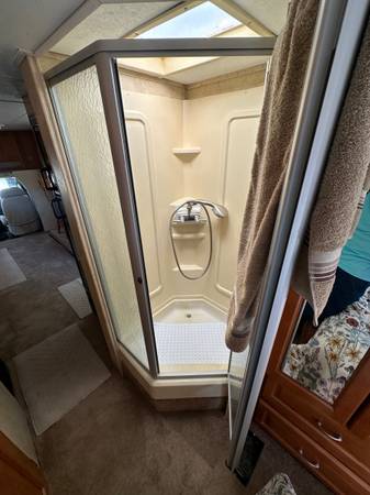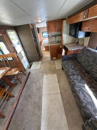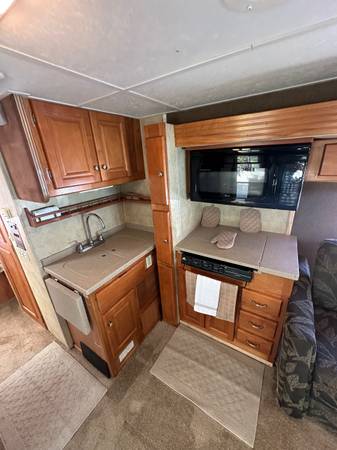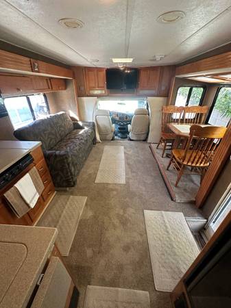 Runs excellent sleeps for comfortably queen rear bed in bedroom couch, converts into bed, freestanding table with four chairs full kitchen Microwave refrigerator freezer works on gas and electric Polar pack Central air conditioning and central heating wardrobe closet in bedroom On board generator Entry step Rv has only been used for camping Everything works title in hand please no time waster cash only no loans