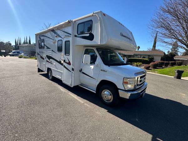 2012 mini class C Sunseeker 23 feet long with rear bed sleep six comfortably only 23,000 original miles always stored indoors works excellent no leaks no animals non-smokers always maintained tons of maintenance through the years practically like full kitchen, three burner stove, microwave oven double sided sink roof mounted air conditioning central heating on board generator with extremely low power awning Ford E450 chassis two TVs outdoor auxiliary shower