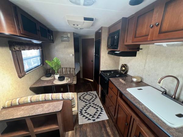2013 Aspen Trail by Dutchman 21FT travel trailer model 1700 DB tandem axle extremely clean all appliances work fantastic no leaks, clean title currently registered new tires new awning non-smoking, non-pets located in Modesto, California great amount of storage in inside and out sleeps up to 7 people rare corner, full-size bed with overhead bunk, dinette booth, and couch turns into bed private bathroom at standup shower indoor outdoor speakers travel trailer is extremely light and could be easily pulled with any size SUV or pick up truck dry weight is 3465 pounds call now for more information located in Modesto, California serious inquiries only asking $7,900 obo