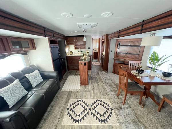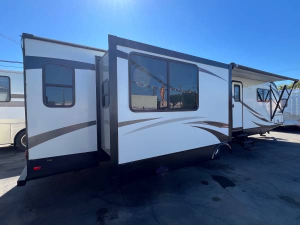 Selling this 2017 Mallard by heartland travel trailer model m-325 absolutely gorgeous inside and out 3 slide out electric awning electric jacks 33FT long all appliances worked fantastic. Tires are great condition New battery recently serviced absolutely no leaks clean title double entry private bathroom with stand-up shower private walk around queen bed with great amount of closet. Space with dresser beautiful entertainment center with stand free table sofa couch turns into bed, recliner, chair, beautiful bay windows, absolutely gorgeous kitchen with island counter must see in person to appreciate his true condition. It is an absolutely beautiful trailer located in Modesto, California. Must have a 2500 or better pick up truck to haul. Dry weight is 8025 pounds asking $16,500 obo