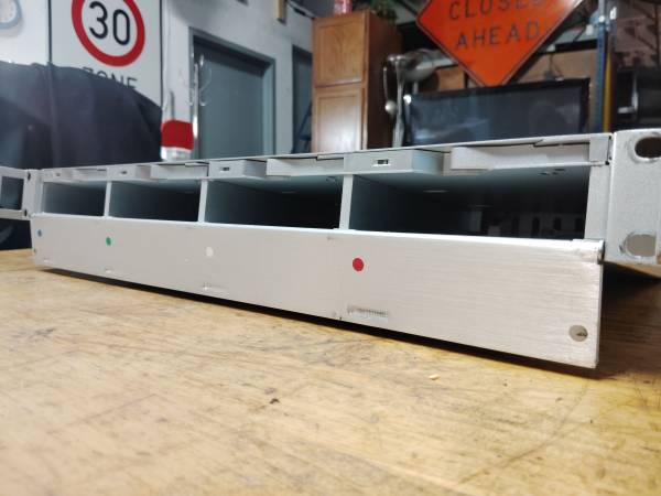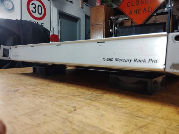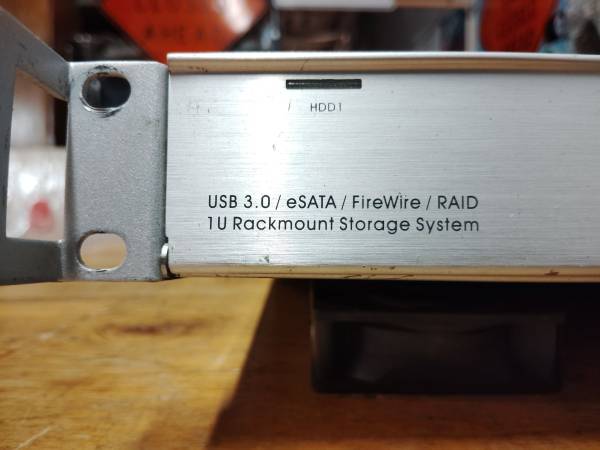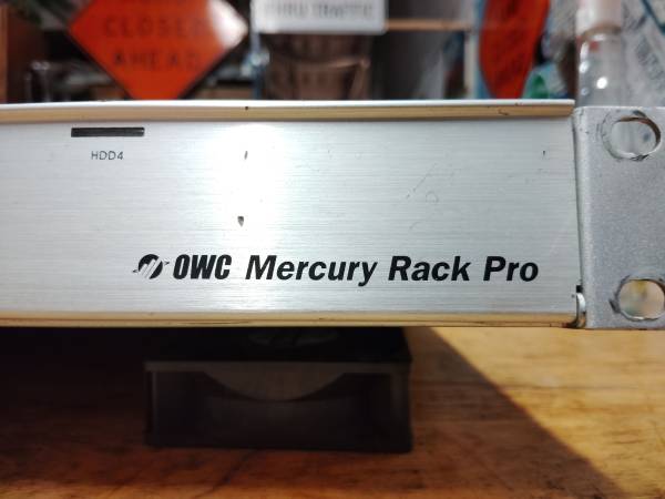 O w c Mercury rack pro. Can hold four SATA hard drives via USB 3.0, firewire, esata, raid 1u rack mount. Drives not included