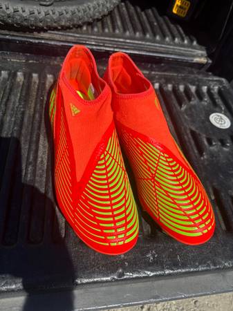 adidas PREDATOR Soccer shoes Size #13 US Color Orange /Green stripes Lave less Pre-owned Sold “As-Is”