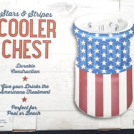 Stars and Stripes inflatable cooler Bag Chest by Wembley New in box Fun for your next party or camping trip Set up in minutes by blowing up or using a hand pump For beach, backyard BBQs, pool...