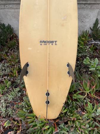 Rocky’s Midget Smith Size. 5’11” x 19” 3 FC Fins Stomp pad Pre-owned Sold “As-Is”
