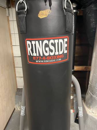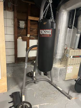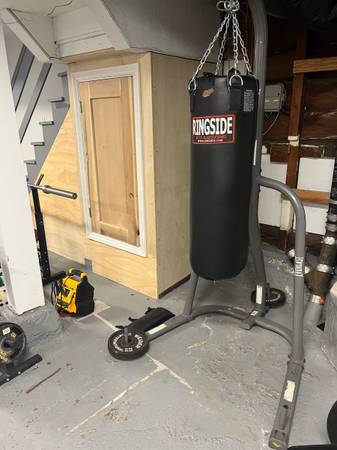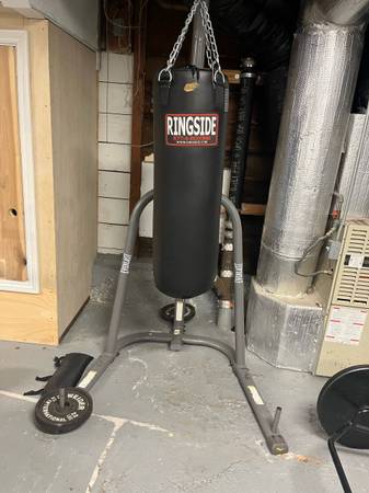 Base is very stable and has space to add weight plates to make it more stable. The punching bag is about 60lbs and in great condition. Will need a truck to carry the base or we can take it apart...