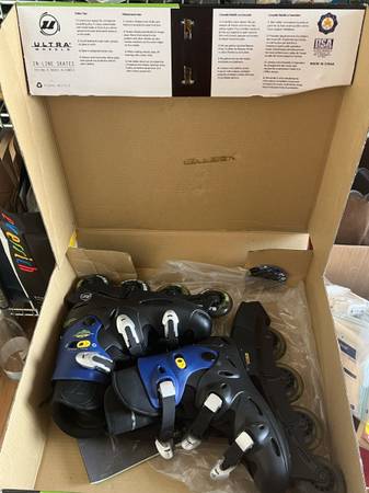 New inline skates, never been used but has some light scuffing from storage - has been stored in the garage for at least six years and smells like it (stale?) Pick up in San Francisco near Lake...