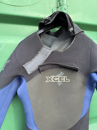 XCEL INFINITY Wetsuit Size Large/Large Color Black/Blue Pre Owned Sold “As-Is” Front In Zipper loading Has a mending Patch on top rigth side