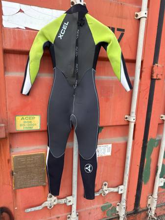 XCEL EXPLORER 4:3 Wetsuit Size W#8 Color Black/Green Back Zipper Pre-owned a few scraps on front & Back not trough need a bit of neoprene cement and voila like new! Look @ pics Sold”As-Is”