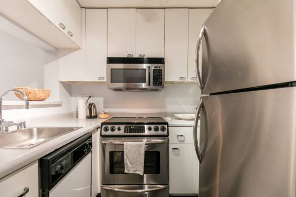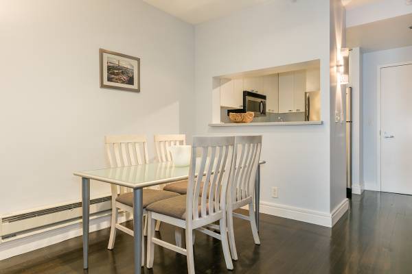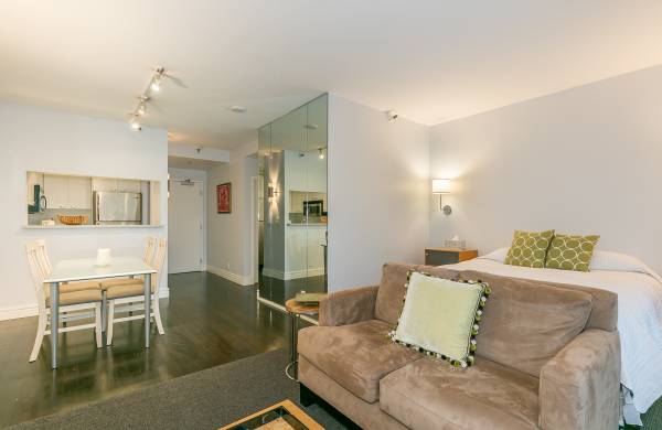 Furnished remodeled contemporary and sleek studio is ready for your enjoyment. Its advantageous location is close to the financial district. Four blocks from the water front, various shopping and restaurants nearby. Fully designed and available furnished. This spacious studio features a gourmet kitchen with stainless appliances.