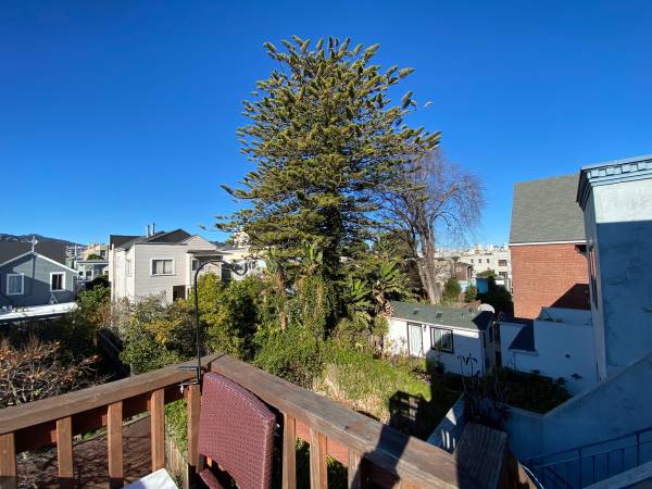 Small deck, outback overlooking Twin Peaks - watch the Karl the fog roll in and stop short of the Mission