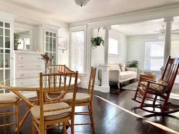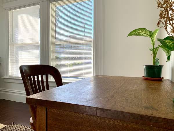 Private entrance. Private backyard can be shared occasionally. Kids live on property; you may occasionally hear steps and jumps.