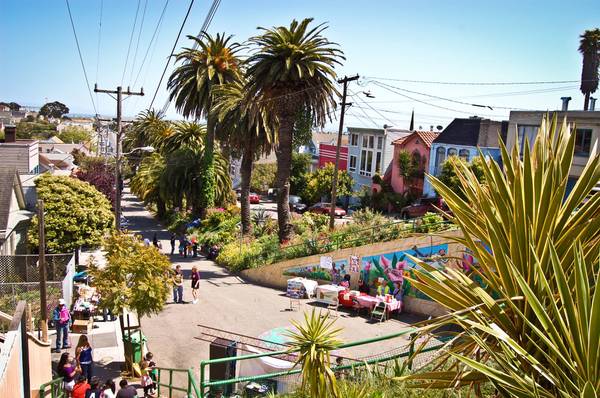 Vibrant multi-cultural neighborhood, sunniest district in San Francisco. While removed from busy city life, the neighborhood provides excellent access (~10 minutes bike ride) to the trendy Dogpatch, artsy Mission and cozy Bernal Heights districts, which offer plenty restaurants, shops, art galleries and night life opportunities. A nice coffee shop, an upscale Mexican taqueria, a pizza garden, a premier garden store with coffee shop, a wine bar and Italian market, and a local brewery are all within walking distance.