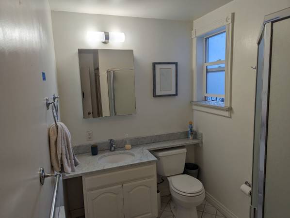 The other roommate, who has his own bath, with tub and shower, is Alec, who works in tech.