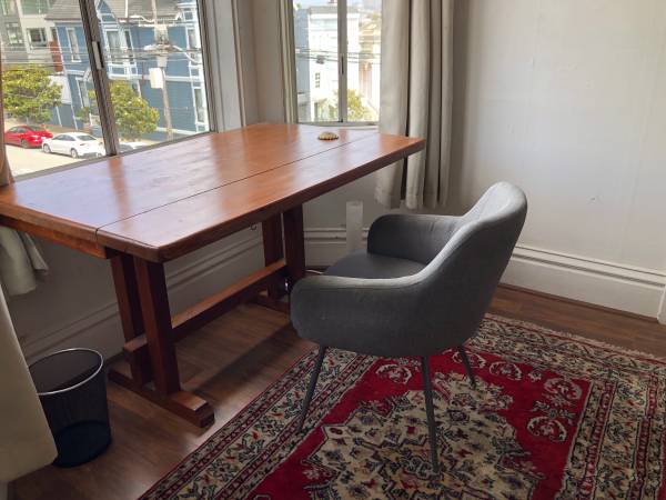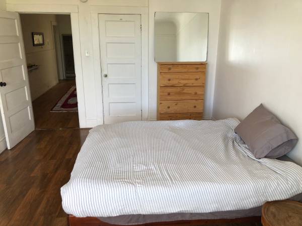 The house is older with lots of unique features like high ceilings, crown molding, an extra wide hallway and exposed beams. There is also a shared backyard that is quiet. There is a fully equipped kitchen with gas stove / oven, microwave, the bathroom has a claw foot bathtub and shower with great water pressure. The living room is big, open, comfortable and has plenty of seating, a faux fireplace, three big south facing windows, house plants and a few art installations. There are nice views of the neighborhood, sunsets and Twin Peaks. There is a washer and dryer here in the unit, fully functional and really convenient. Fast and reliable internet / WiFi.