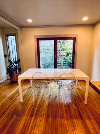 - Living room has brand new west elm sofas with beautiful view, dining room has brand new CB2 dining table with view to the backyard, shared kitchen (Viking Range stove + Bosch dish washer, skylight, windows).