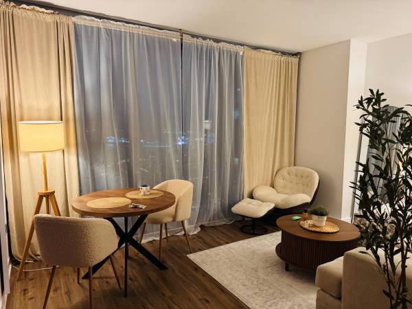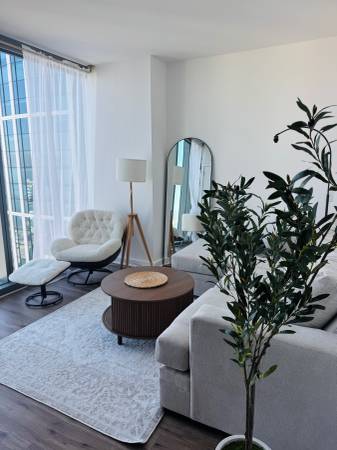 Modern studio in a high-rise with amazing bay views and floor-to-ceiling windows. Everything in the apartment is brand new and designed for comfort and convenience.