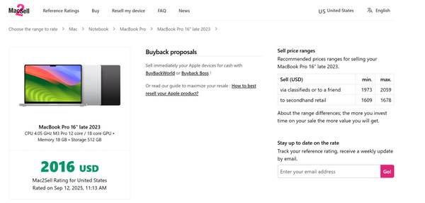 Mac2sell.net valuation on this specific model for a classified sale is $1973 - $2059 (see image attached)