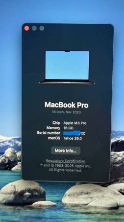 CPU 4.05 GHz M3 Pro 12 core / 18 core GPU • Memory 18 GB • Storage 512 GB