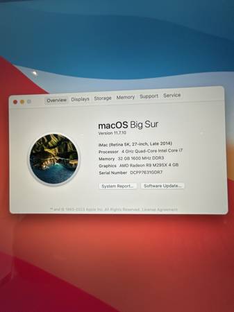 iMac Late 2014 32GB 1TB Slate Drive Mac Big Sur Drive has been swiped clean. Minor chip on left side of screen. Comes with keyboard and mouse. $120.00