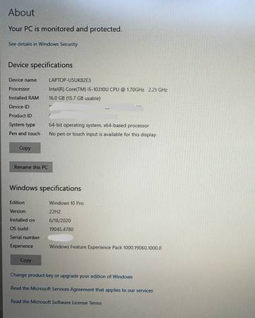 Intel(R) Core(TM) i5-10310U CPU @ 1.70GHz 2.21 GHz