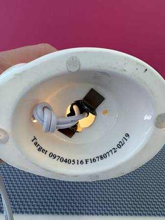 This is a plug-in ceramic night light from Target that offers a soft glow to a child's room. Not bright enough to keep them awake, but soft enough to keep the monsters away!