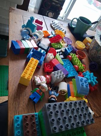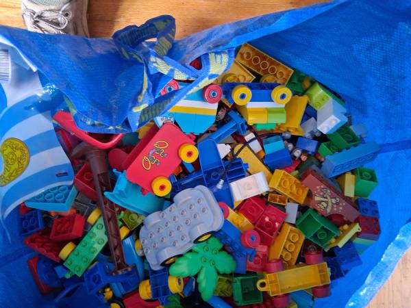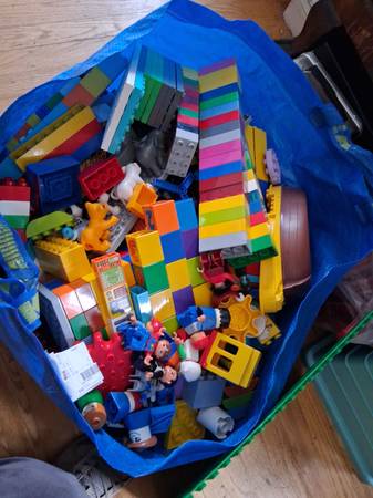 Duplo,Large amount,Batman,animals,numbers,pirate,minifigs boat,windows,doors,plane,trains,cars.An IKEA bag packed with pieces.Very heavy.used.$85. ..Only replies with phone number will be...