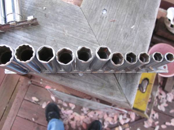 9mm to 19mm. Two are 12 point the rest are 6 point. 3/8ths inch drive