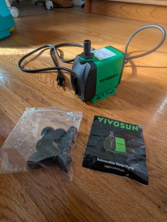 For sale: Vivosun 800GPH Submersible Pump (3000L/H, 24W). I purchased it brand new a few months ago. It is in good condition, but there is a crack at the bottom of the pump (see photo). This crack...