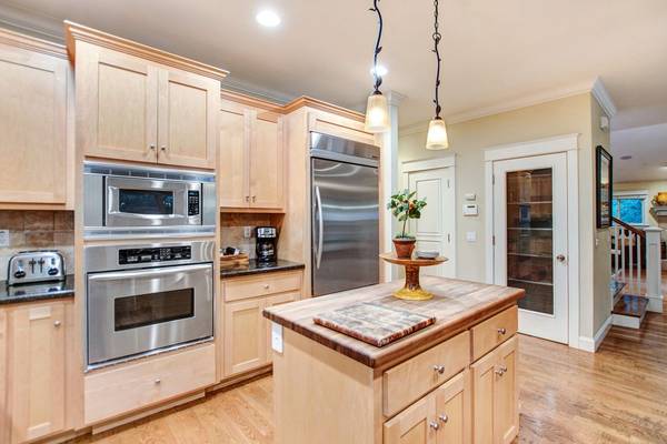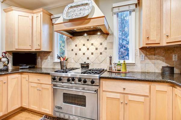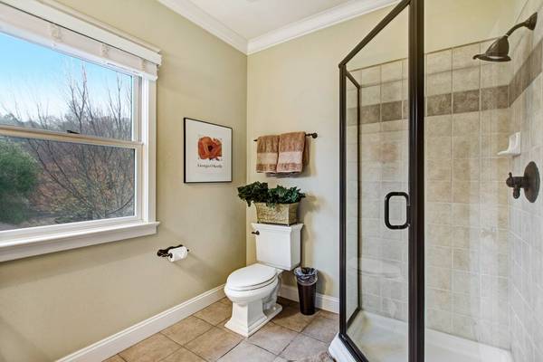 The downstairs kitchen and dining area, as well as the upstairs master suite, both offer scenic views of a private winter creek. Mature landscaping and soft outdoor lighting set the tone for peaceful evenings spent outside. The home also boasts a seasonally solar-heated pool, available from June to September, for a refreshing dip at any time.