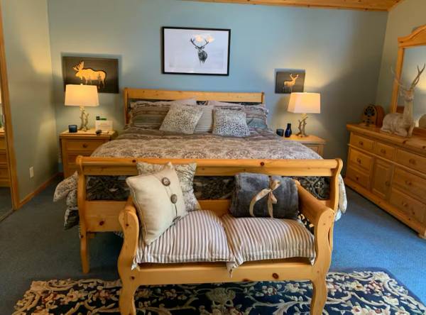 This beautiful Truckee gem remodeled in 2021 offers 3 bedrooms plus a den with cozy rustic modern amenities including a wood fireplace. Less than 10 minutes to Northstar and 15 minutes to Lake Tahoe. Enjoy luxury linens and beautiful panorama views off two private decks w/BBQ, wireless internet, and smart TV's in every room. Featuring 2 King Size and 2 double beds our home has supplemental sleeping arrangements that include a queen size airbed & extra-large bunk bed cots.