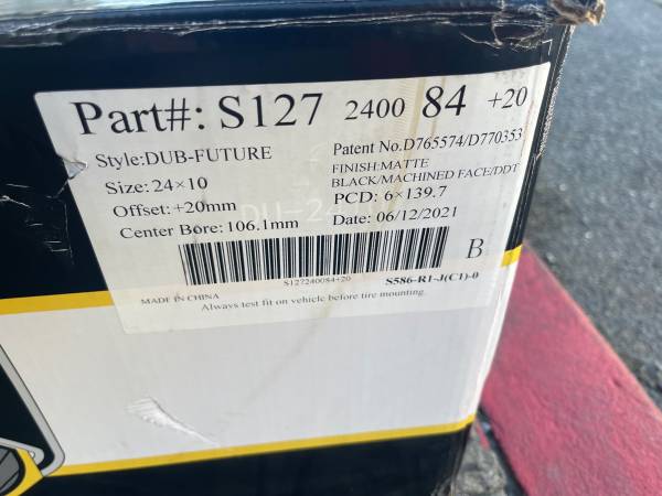 I have a pair of 24 inch dub future wheels. Not your typical cheap wheels. Only have 2 wheels. Wheels are I. The box has some small scratches on them. Paid $700 per wheel when bought new. 6x139.7 6x135 30mm offset. $800 for the pair. Save some money and buy 2 to complete the set. show contact info