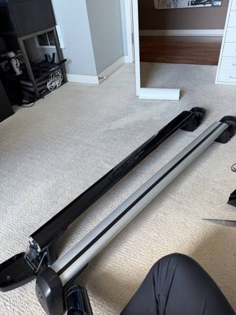 I have an oem bmw x3 roof rack. I have vinyl wrap installed on it but I can easily remove. Picture shows what it is in black or silver. Selling because I upgraded my car and this wont fit Comes with...