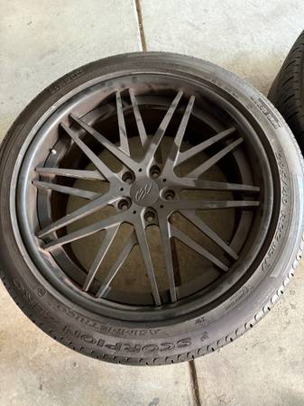 Set of 4 22 inch CEC wheels fits 2002-2018 all G wagons. Wheels are straight. 2 tires still have good tread left. 2 tires need to be replaced soon. Pirelli Scorpion Zero 295/40/22 tires