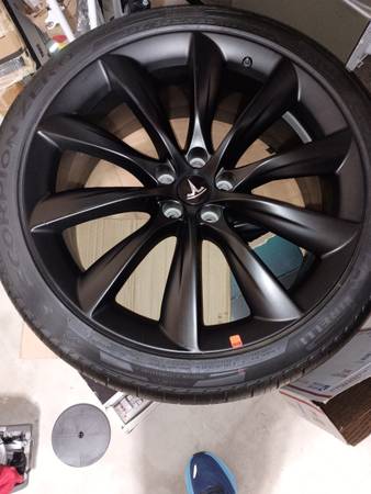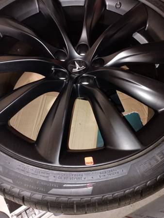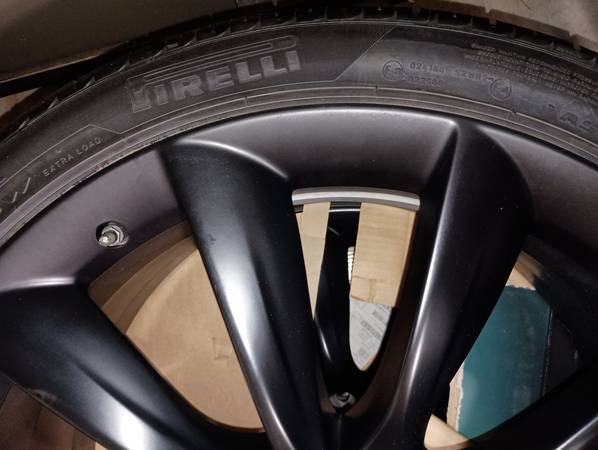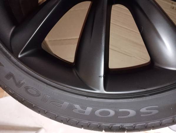 Tesla model x black rear 22" rim and pirelli scorpion 285/35zr/22 tires both brand new never used in near mint condition minor small scuffs from movers handling them. See pics Rims and tires have only delivery miles on them asking $450 each. call show contact info