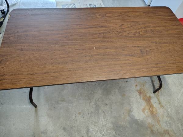 The Table is 30 inches wide and 60 inches long. It's the standard 29 1/2 inches tall. The table's metal legs fold for easy storage. The Table is in decent shape but has a little rust underneath it (not even visible!) and has a few scratches on the engineered wood table top. Again, that's nothing a nice tablecloth can't cover. This will be perfect for those extra guests this thanksgiving. These folding tables sell out quickly in stores this time of years so grab this one for Free now!