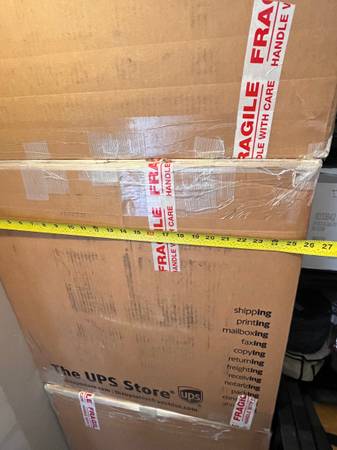 1 box is 21 1/2" x 21 1/2" x 21 1/2" 3 boxes are 25 3/4" x 25 3/4" x 25 3/4" bubble wrap included