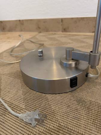 Cute working silver desk lamp, just missing the shade. Cool turn knob on/off switch and has a plug on the base for easy plug in. Great for bedside! Pick up in Glen Park