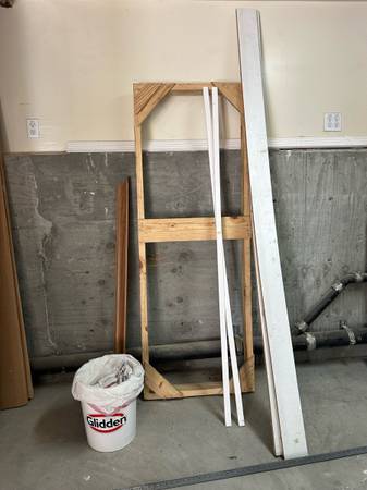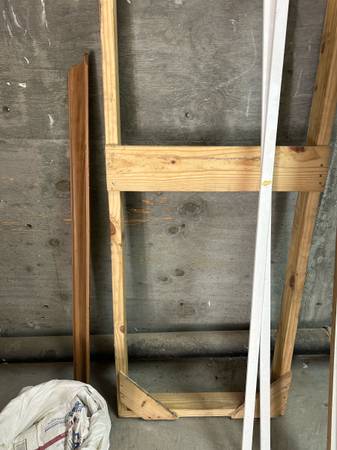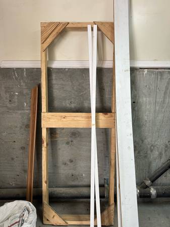 Free mix of construction materials (pictured), including wood trim, long metal rods for corners, and big wood box frame. If it’s up, it’s still available.
