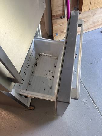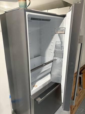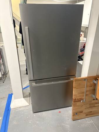 Giving away a working fridge! It's a stainless steel bottom-freezer model that still runs great, just needs a good cleaning, especially the freezer drawer (see photos).