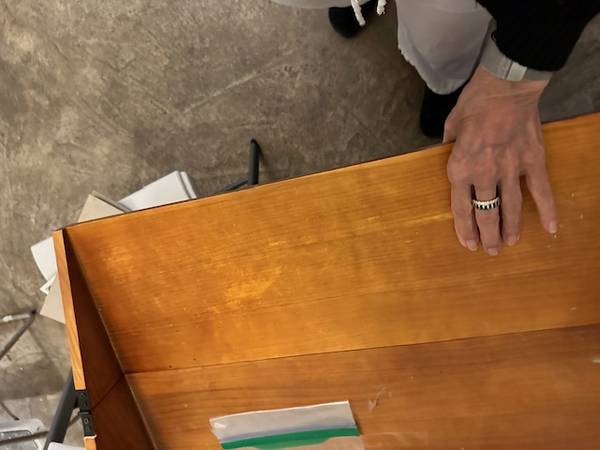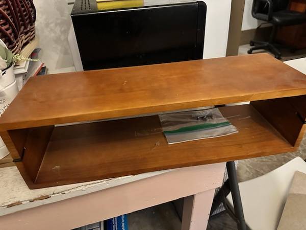 Small "wall hung pull out desk" folds up like a shelf, then opens to be a stand up desk for laptop