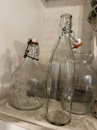 Mosaic Vase, Glass water bottles, clear bowl vase (needs to be cleaned,