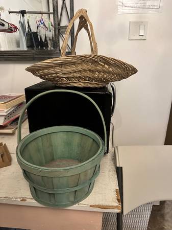 Baskets different sizes large, square Medium small...Spray orange for Halloween then silver for Christmas