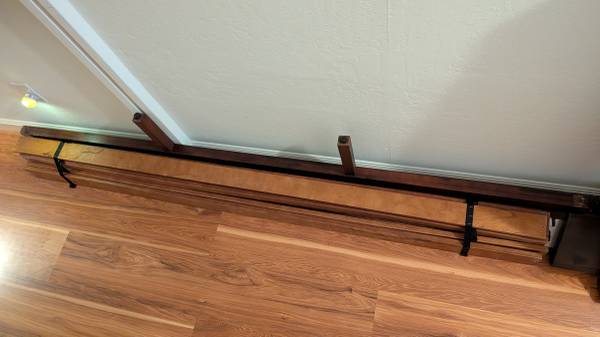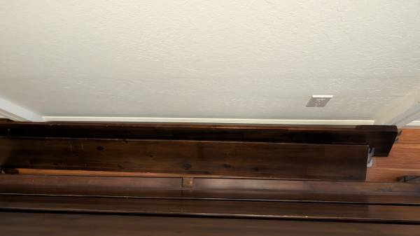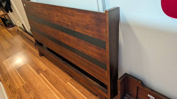 This bed is in good shape. Moved bed to new apartment, but because of its angle of the headboard, it took up a little too much room in the new bedroom (see below):