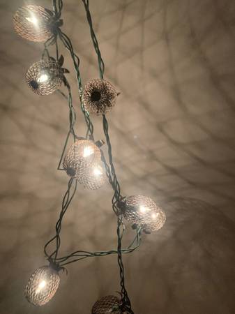 Two strings of 10 lights (for a total of 20 lights). Metal pineapple shaped lantern around each light creates great shadows. https://goodforbuyer.com/product/749163/